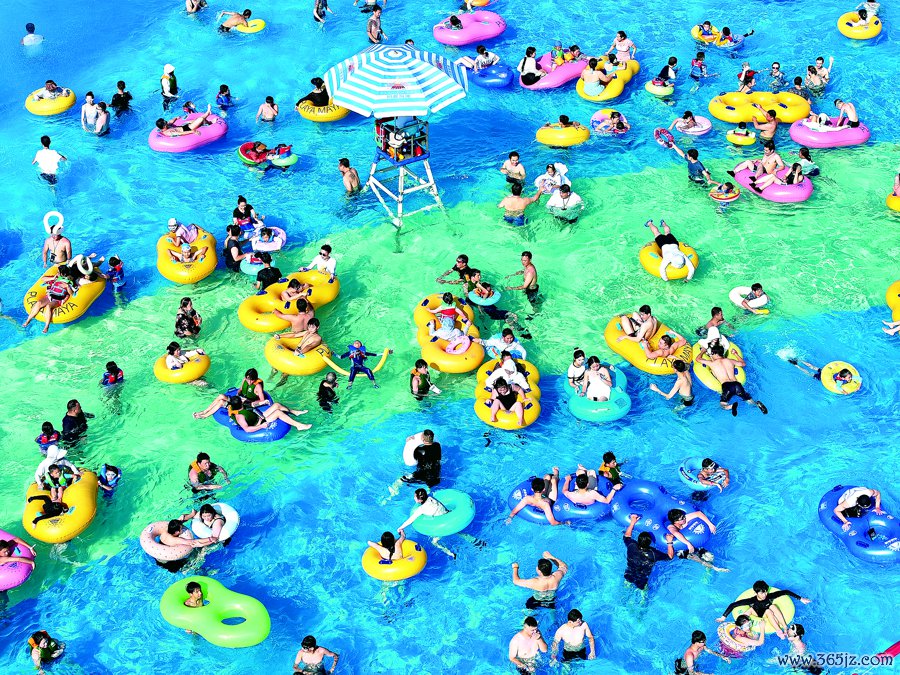 搭客在上海玛雅海滩水公园嬉水消夏。(赖鑫琳摄)
